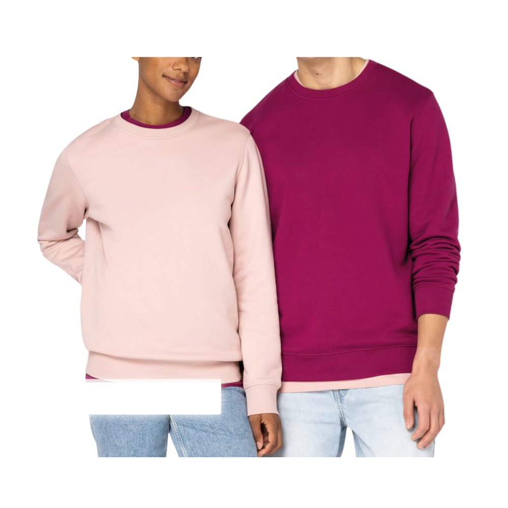 350gsm. 85% organic cotton/15% recycled polyester.